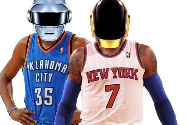 Salvo secreto de sumario, ni Melo ni Durantula tienen previsto emular a Daft Punk durante las celebraciones del All-Star Weekend de la NBA que arranca esta madrugada (Canal+1, Canal+Dep, Yomvi, 03:00). Tampoco hay confirmación de que el dúo electrónico francés, acaparador reciente de premios Grammy, vaya a irrumpir en el show. A pesar de su vínculo con el artista programado para la ceremonia de presentación de los jugadores del All-Star Game, en la jornada dominical: Pharrell Williams (más sus huéspedes Diddy, Snoop Dogg, Nelly y Busta Rhymes). Es este músico que bromea sobre su puesta a punto para la cita, pesas incluidas: como le advierten al final del link, él no va a disputar el partido.